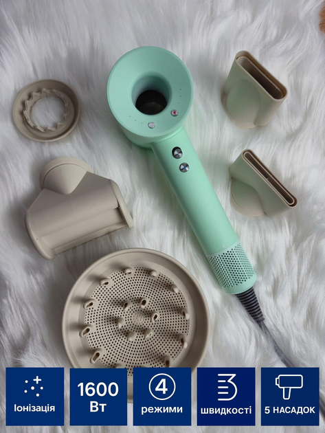 Фен для волосся Super Hair Dryer 5 насадок 1600 ВТ М'ятний