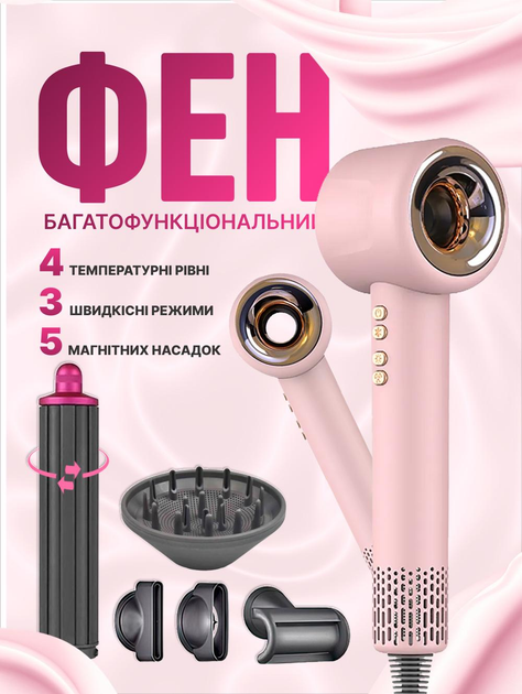 Фен-стайлер для волосся Onuliss Hair Dryer з магнітною насадкою Локон / Рожевий