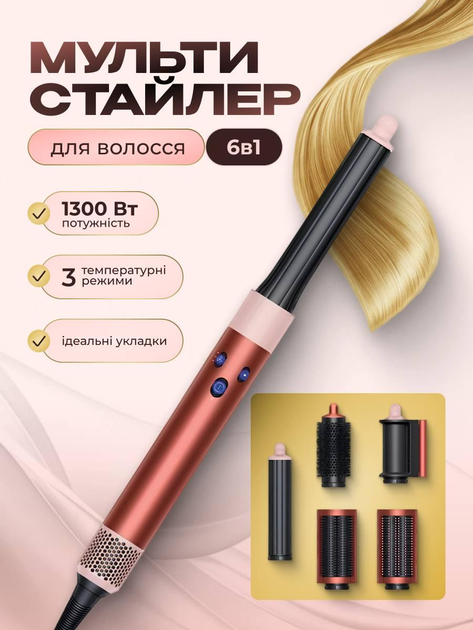 Стайлер для волосся 6в1 Airwrap Complete Long Topaz Orange фен щітка насадки для накрутки та вирівнювання волосся, потужніст