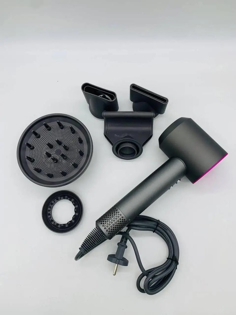Фен Для Волос 5 Насадок 1600 Вт З Турбо Режимом І Іонізацією Сіро-рожевий