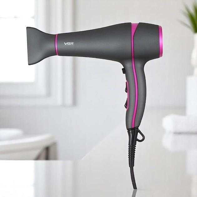 Професійний фен для волосся VGR V з іонізацією та насадками (дифузор + концентратор), 2200 Вт (2O4)
