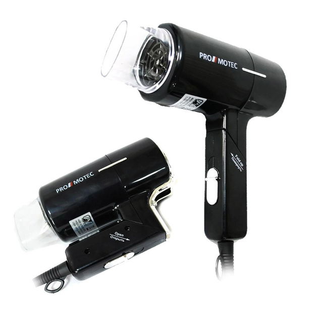 Фен мощьный дорожній для волосся зі складаною ручкою 3000 Вт фен для подорожей від мережі 220 Promotec PM 23I4 чорний