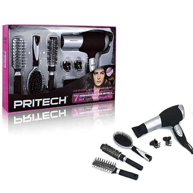 Фен багатофункціональний для волосся з насадками Pritech LD-6071 2000 Вт сірий (LD-6071)