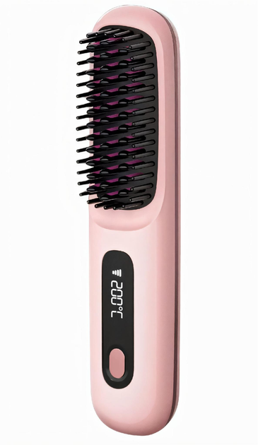 Бездротова керамічна щітка-випрямляч з підігрівом з 3 температурними режимами 160-200°C (рожевий)