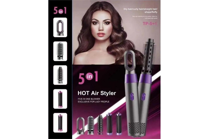 Мультистайлер для волосся Sokany HP-7956PUR 5в1 Hair Dryer плойка фен з насадками для укладання 1000W Рожевий