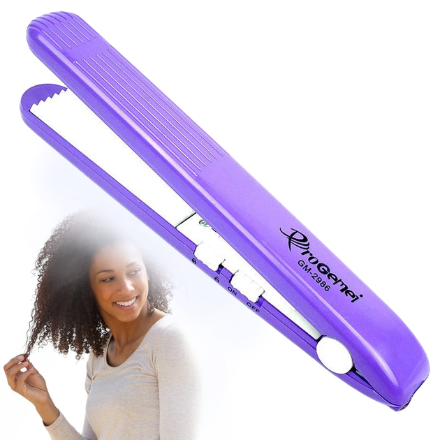 Міні-плойка щипці гофре праску дорожній для волосся Gemei GM 2990W світло-рожевий 360 шнур шарнірного з'єднання Керамічне по