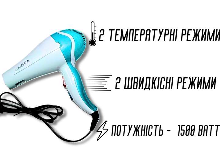 Фен FROM FACTORY FEN9018 для волосся 2 режими нагрівання та швидкості NOVA NV-9018 /1500W/21см/20см