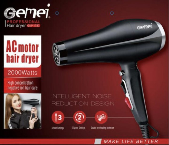 Фен Gemei GM-1770 для укладання та сушіння волосся, 2200W