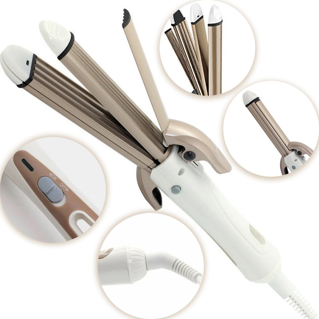 Плойка хвиля для локонів стайлер бігуді для завивки волосся, 25 мм AND GTM Gee 3-в-1 швидкий нагрів кераміка хвилі Бежевий