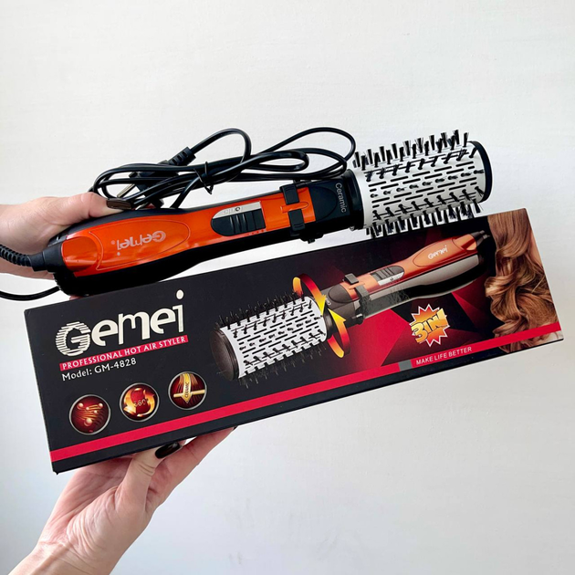 Фен-щітка Gemei GM-4828 для укладки волосся з обертовою та двума додатковими насадками 1000 Вт