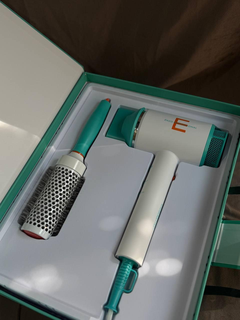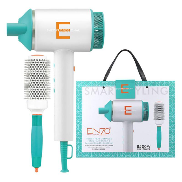 Фен для волосся Enzo EN-8899 з щіткою 8500 Вт Білий з бірюзовим