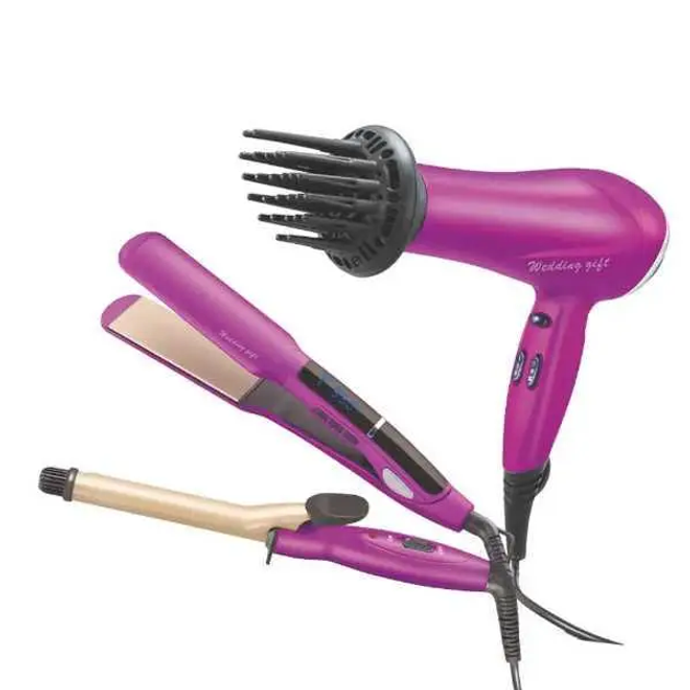 Набір для укладання волосся 3в1 фен для сушіння волосся, плойка, праска ENZO EN-6303 Рожевий