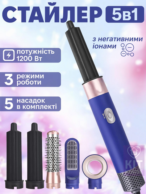 Стайлер 5в1 з негативними іонами, фен щітка мультистайлер для укладання волосся завивання випрямлення професійний багатофунк
