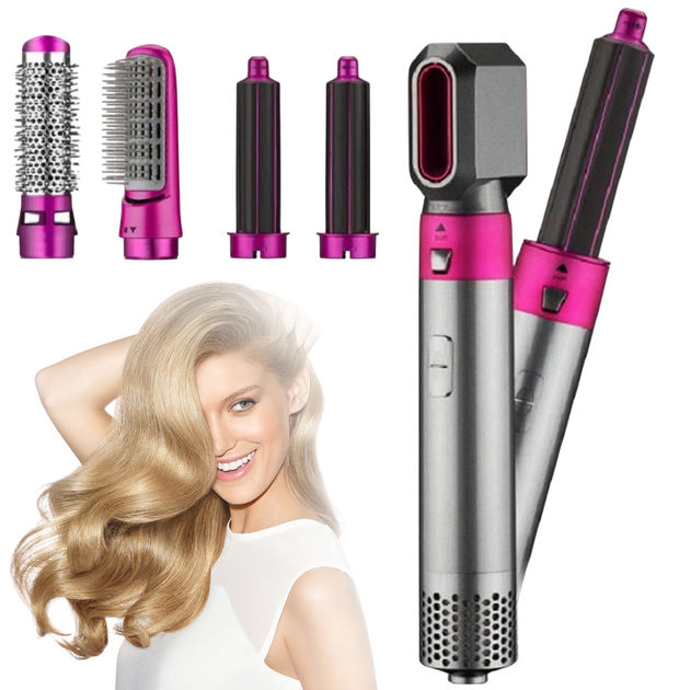 Стайлер 5 в 1 для різних типів волосся 3 швидкості 5 насадок фуксія