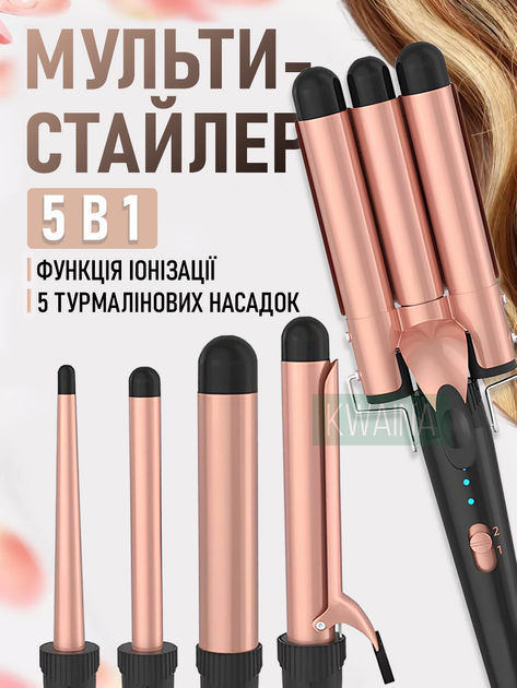 Мультистайлер 5в1 з керамічним покриттям, швидким нагріванням 30 сек та регулюванням температури 150–200°C