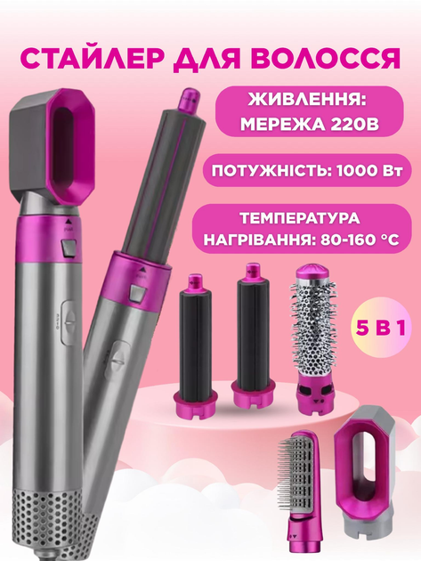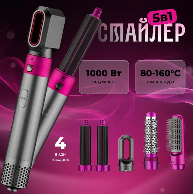 Фен-стайлер 5в1 Hot Air Styler професійний мультистайлер з 5 насадками 1000 Вт для сушіння укладки та випрямлення волосся