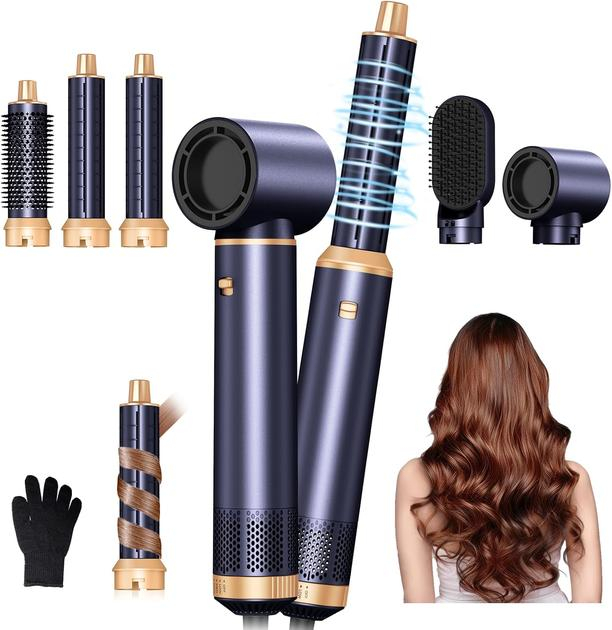 Мультистайлер 5 в 1 UKLISS для укладання волосся завивки випрямлення професійний багатофункціональний прилад з насадками син