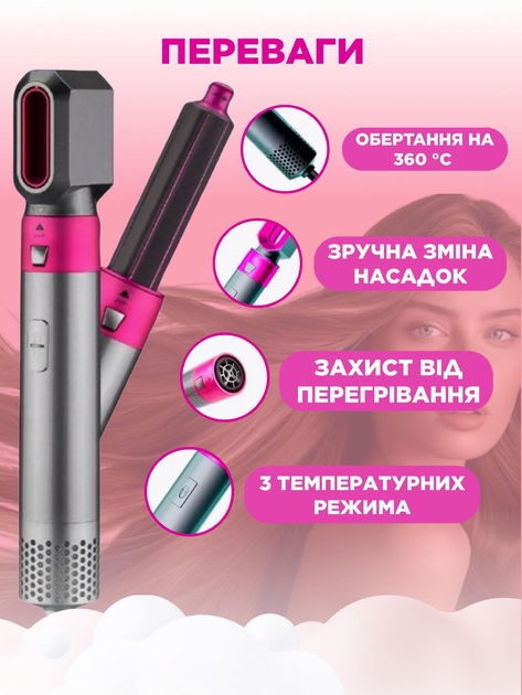 Мультистайлер 5 в 1 UKLISS для укладання волосся завивки випрямлення професійний багатофункціональний прилад з насадками