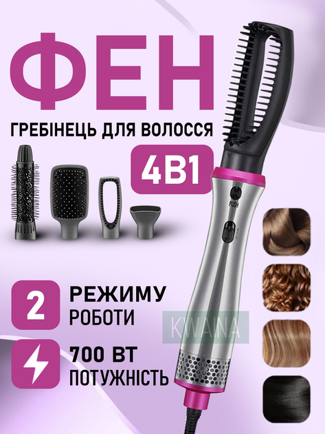 Фен-гребінець 4в1 для укладання волосся з 4 насадками 700 Вт, функція іонізації, для всіх типів волосся