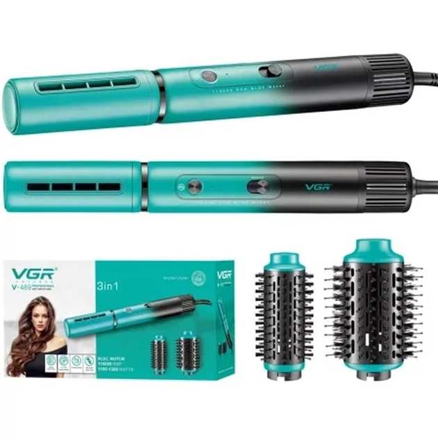 Фен-щітка 3в1 V-489 для укладання волосся, стайлер з насадками, фен браш для об'єму