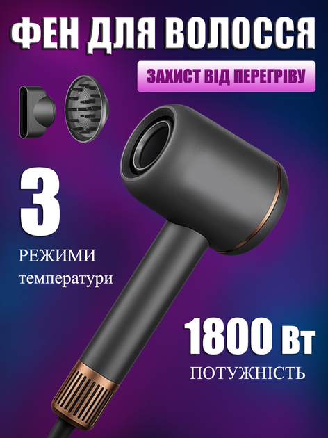 Професійний ультразвуковий фен для волосся із дифузором та концентратором DSP 30267 1800 Вт Сірий із золотистим