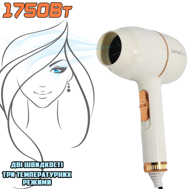 Фен GEMEI 1783GM компактний 1750W з концентратором + 3 температури та 2 режими швидкості Бежевий (10181)