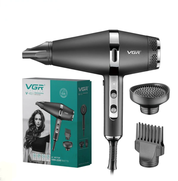 Фен для волосся потужний з концентратором і холодним повітрям VGR 1800 Вт, компактний фен з 2 швидкостями та 3 температурним