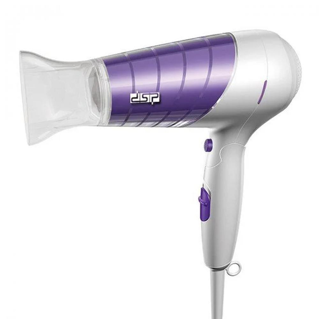 Фен дорожній DSP 1800 Вт з іонізацією і подачею холодного повітря, складний, біло-зелений (3OO37Violet)