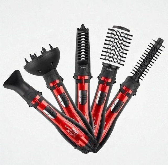 Стайлер для завивання та випрямлення волосся RAF 1200 Вт, фен-шітка, браш 5 насадок, 3 швидкості, Чорно-червоний (6І4)