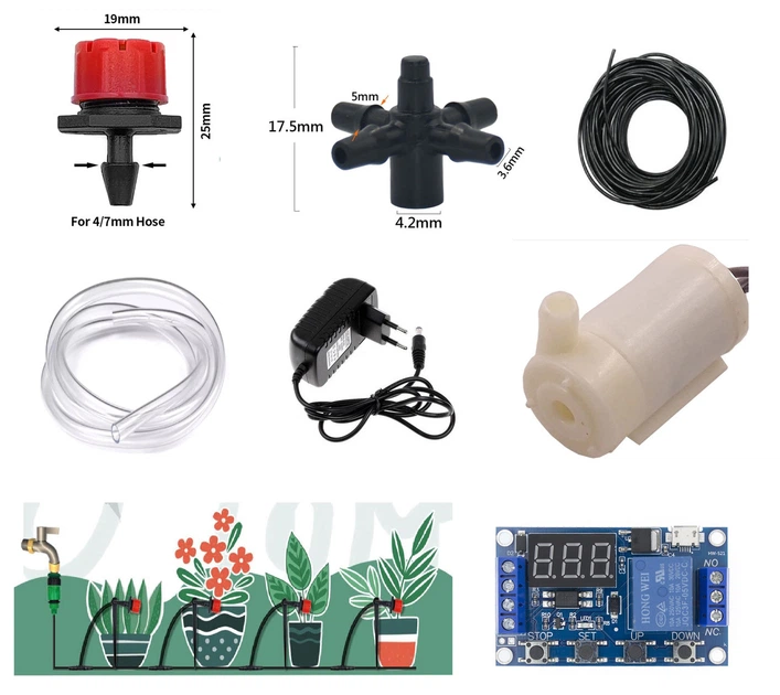 Комплект крапельного поливу з таймером та насосом 8 форсунок червоні DIY