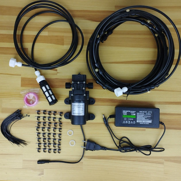 Система туманоутворення 16 латунних форсунок 12м з насосом 12В. Туманоутворювач, зрошувач, дощувач.