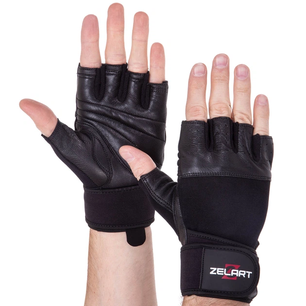 Рукавички для фітнесу та важкої атлетики шкіряні ZELART SB-161070 (шкіра, відкриті пальці, р-р 2XL, чорний)