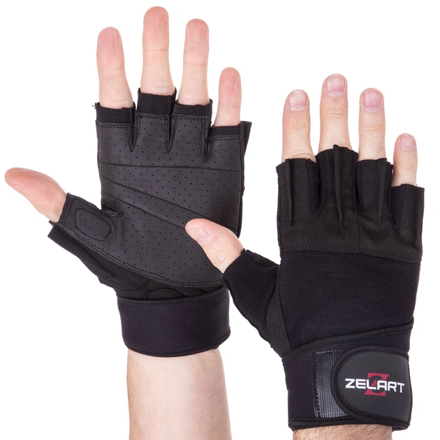 Рукавички спортивні шкіряні ZELART SB-161552 (шкіра, поліестер, відкриті пальці, р-р 2XL, чорний)