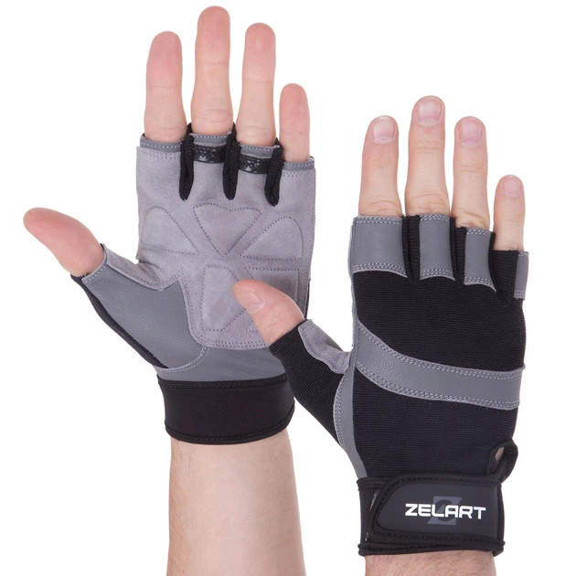 Рукавички для фітнесу та тренувань ZELART SB-161594 (PVC, PL, відкриті пальці, р-р 2XL, чорний-сірий)