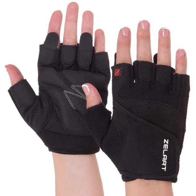 Рукавички спортивні ZELART SB-161567 (PVC, спандекс, відкриті пальці, р-р S-XXL, чорний)