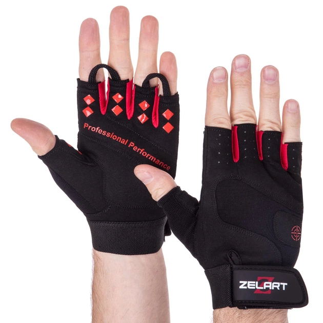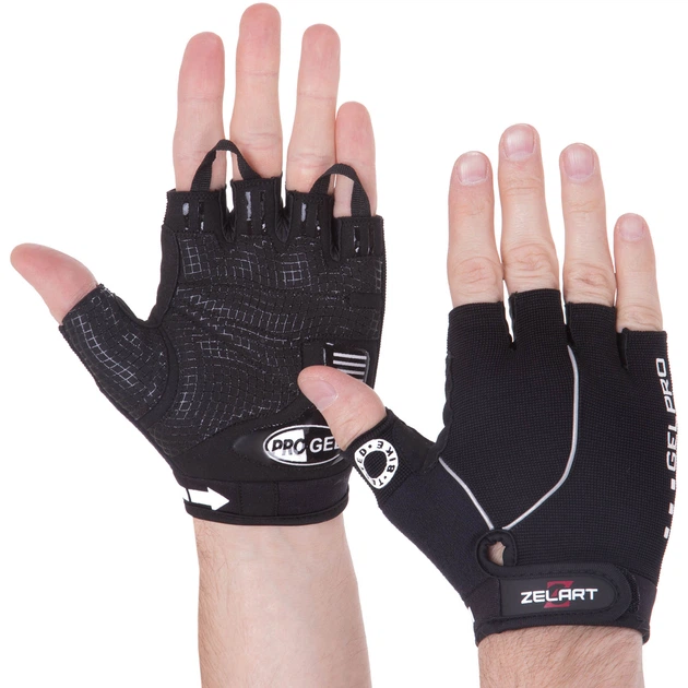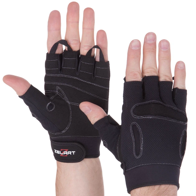 Рукавички спортивні ZELART SB-161566 (PVC, поліестер, відкриті пальці, р-р 2XL, чорний)