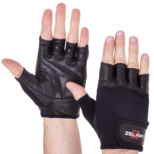 Рукавички спортивні ZELART SB-161560 (PVC, поліестер, відкриті пальці, р-р 2XL, чорний)
