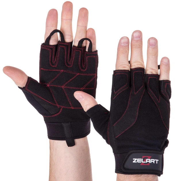 Рукавички спортивні шкіряні ZELART SB-161556 (шкіра, поліестер, відкриті пальці, р-р 2XL, чорний)