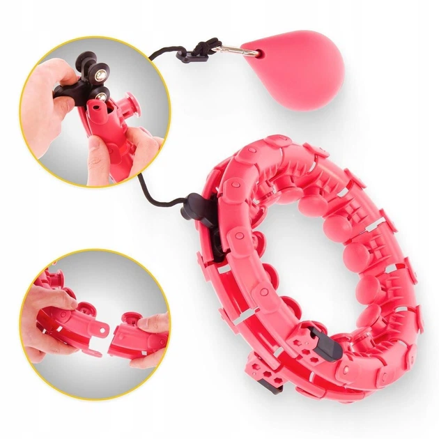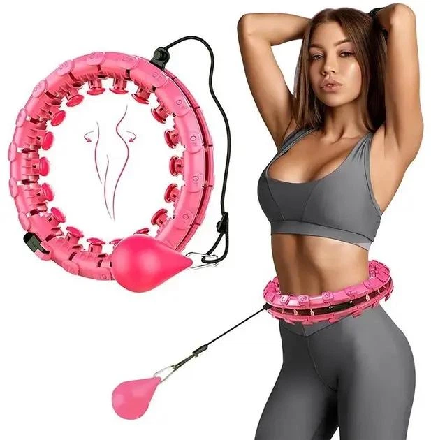 Складаний масажний обруч хула-хуп Intelligent Hula Hoop з масажними роликами та обтяжувачем Рожевий 8767