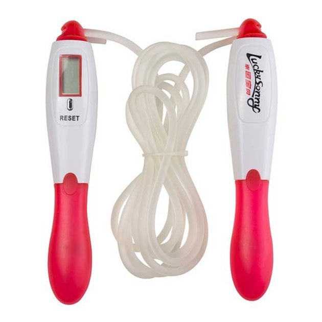 Скакалка з лічильником калорій 2,8м пластиковими ручками і PVC джгутом рожева