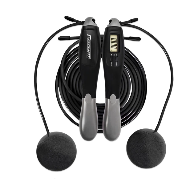 Скакалка з лічильником EasyFit TwinRope швидкісна 2,8 м чорна-сіра ef-0207