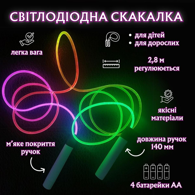 Світлодіодна скакалка RainbowRope, 2,8 м, різнобарне світло
