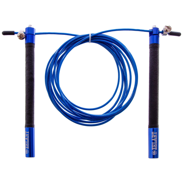 Скакалка професійна зі сталевим тросом швидкісна з підшипниками Zelart (l-3м, d-2,6мм, Синій)