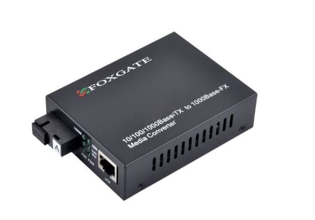 Медіаконвертер FOXGATE EC-Q-1G-1SM-1550nm, 1550 WDM одноволоконний Full / Half duplex, SC 20km (0+70°C), + блок живл