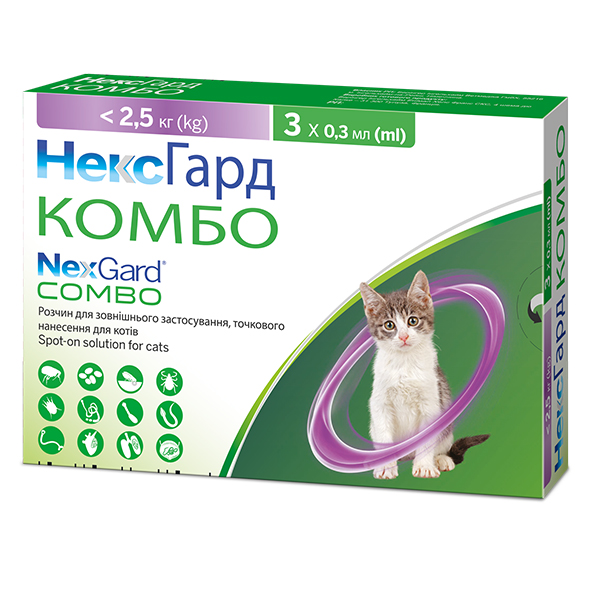 Краплі NexGard Combo від бліх, кліщів, гельмінтів для котів 0,8-2.5кг, 1 шт