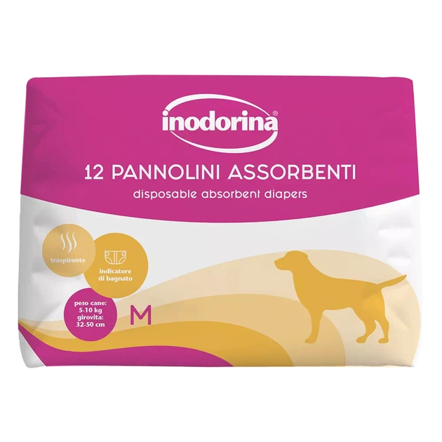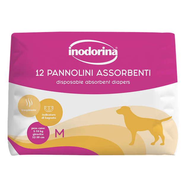 Підгузки для собак сук абсорбуючі з індикатором вологості Inodorina Pannolini Assorbenti, 12 шт, розмір M