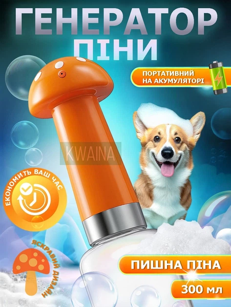 Автоматичний генератор піни дозатор мила для собак піноутворювач для купання тварин, 300 мл USB, помаранчевий