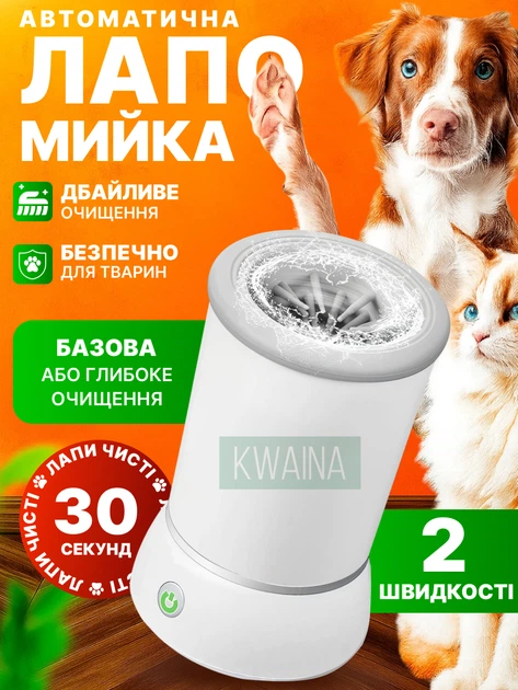 Лапомийка склянка автоматична від USB "Чисті лапки" очищувач мийка для лап собак та котів з силіконовими щетинками, Біла