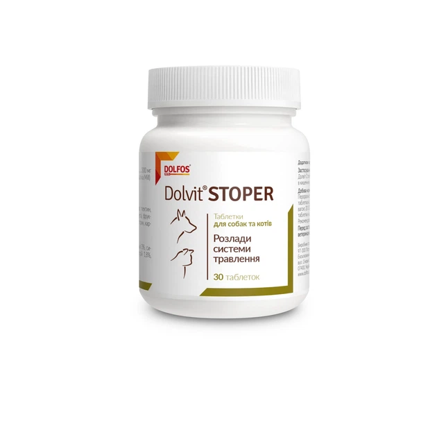 Вітамінно-мінеральна кормова добавка Dolfos Dolvit Stoper для собак та кішок для лікування діареї 30 т 5934-40