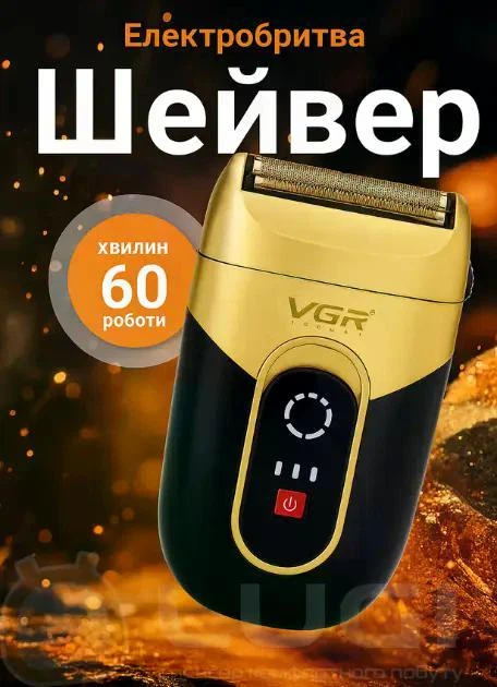 Електробритва чоловіча VGR бритва електрична акумуляторна портативна водонепроникна Li-Ion шейвер для гоління 5 Вт Золотисти
